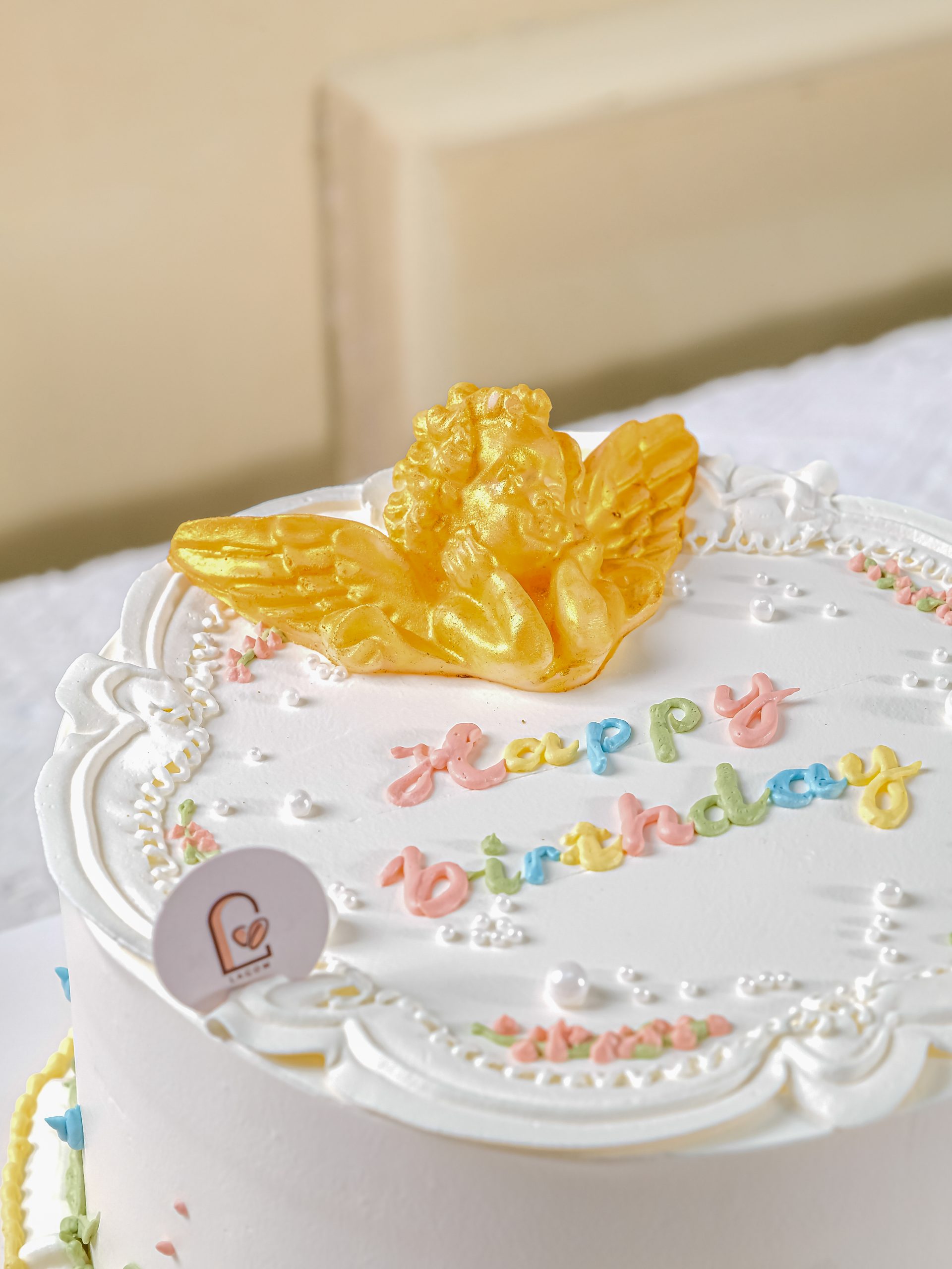Gato Cổ Điển – Thiên Thần Nhỏ là chiếc bánh sinh nhật với thiết kế thanh lịch, cổ điển, mang lại cảm giác quý phái và lãng mạn. Bánh được phủ kem trắng muốt, trang trí bằng viền kem tinh xảo và các họa tiết hoa lá vẽ tay mềm mại quanh thân bánh. Điểm nhấn chính là mô hình Thiên Thần Vàng lấp lánh đặt trang trọng trên đỉnh. Chiếc bánh này là lựa chọn hoàn hảo để tôn vinh sự duyên dáng, vượt thời gian của người nhận.