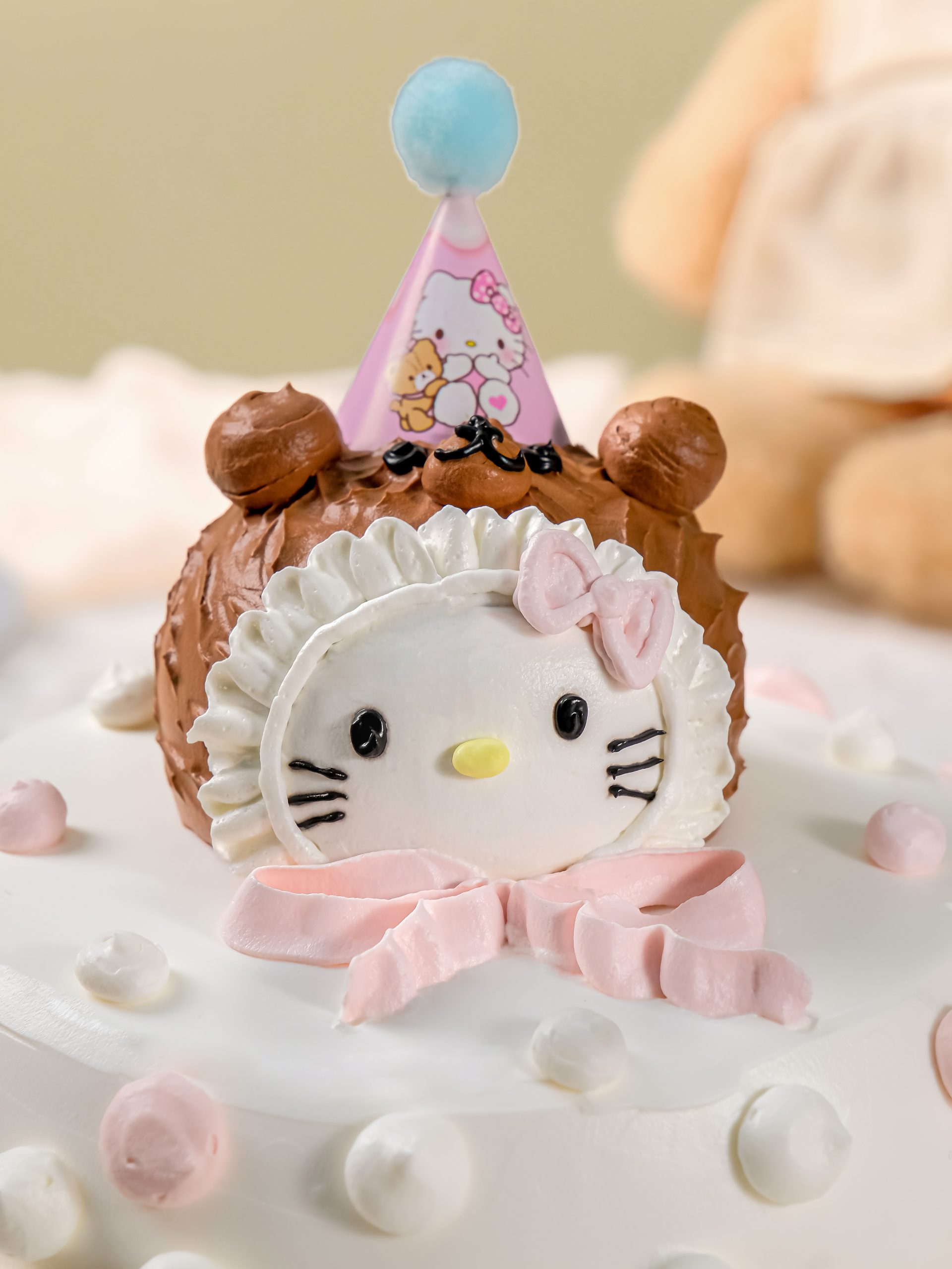 Gato Hello Kitty Nhỏ là chiếc bánh sinh nhật dành cho fan nhí của Hello Kitty. Bánh có tông màu hồng pastel đáng yêu ở thân bánh và kem trắng mịn màng ở mặt trên. Điểm nhấn chính là tạo hình Hello Kitty dễ thương đội chiếc mũ sinh nhật tí hon, cùng các chi tiết trang trí hình trái tim và chấm bi nổi bật. Thiết kế này vừa ngọt ngào, vui tươi, chắc chắn làm bé gái nào cũng thích mê.
